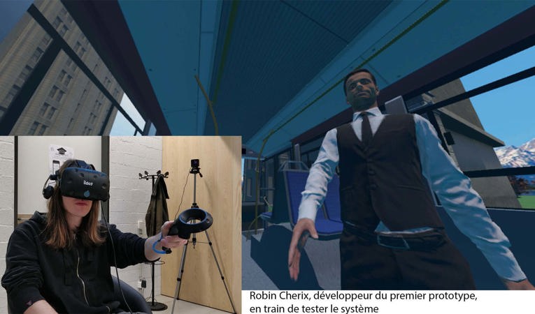 Concrètement, les chercheurs et chercheuses développent des scénarios virtuels projetés dans le casque. Un exemple : assise dans le bus, la jeune personne est abordée par un individu qui lui propose de descendre au prochain arrêt pour aller manger un hamburger chez McDonald’s (voir vidéo). Les éducateurs et éducatrices peuvent choisir le degré d’insistance de l’interlocuteur. Objectif : apprendre à la personne concernée à ne pas se laisser attirer hors du bus par l’individu.