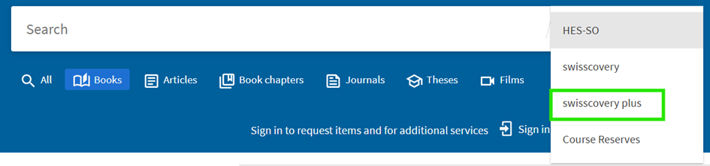 - Extend your search to swisscovery plus to access the collections of the 500 swisscovery libraries and those of the Renouvaud network.