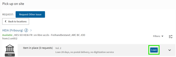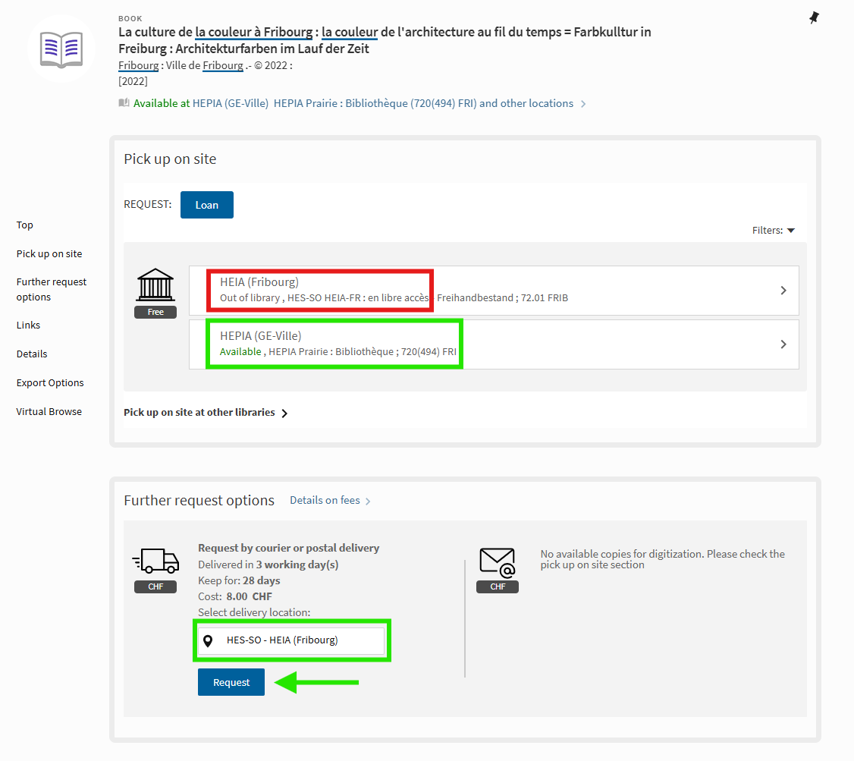 You can also request it via "Pick up on-site" section by selecting "HEIA (Fribourg)" as the desired collection point.