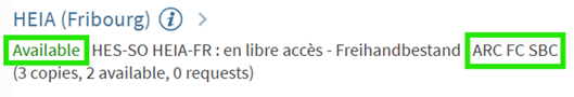 To do this, search for the document you want in swisscovery|HES-SO, click on the title to make sure it is available and get the call number of the document: