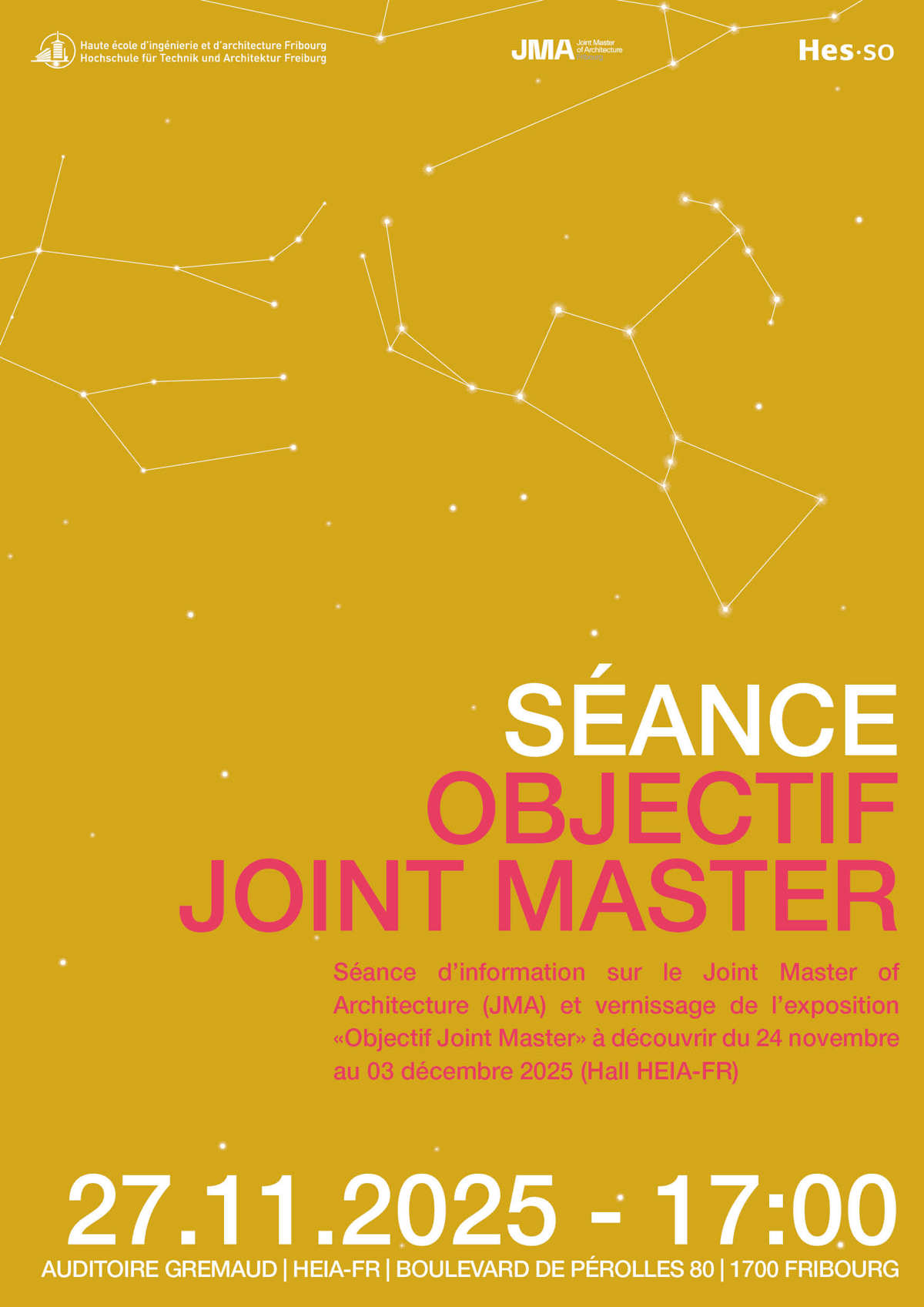 Intéressé·e par le Joint Master of Architecture ? Une séance d'information est organisée par la filière d'architecture le mardi 25 novembre 2025, dans l'auditoire E. Gremaud.