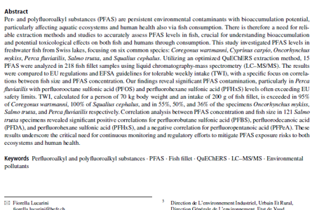 Determination of Per- and Polyfluoroalkyl substances (PFAS) in six different fish species from Swiss lakes