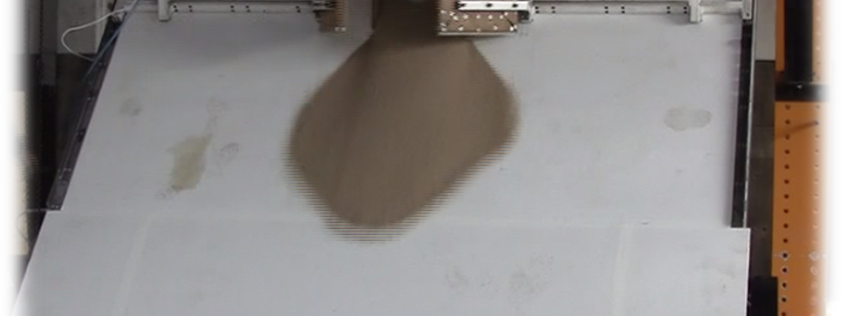 The research will be performed on a large physical model (4 x 6 m in size) allowing the release of dry granular materials on a slope ending with a horizontal accumulation area. Several testing parameters can be varied: material used (gravel, small bricks), release height, volume and release sequence (at once or at different times), inclination of the slope, surface roughness and morphology of the transition between the panels (sharp angular or curved). The foreseen experimental study will focus on assessing the influence of the initial geometry of the mass at start (width, height, inclination of the basal plane) on the propagation, lateral spreading and runout distance. It will take advantage of recent improvements to the releasing device and the measurement system. The former consists of a wood container with variable width and height and with a basal plane that can be inclined with respect to the dip angle of the slope below. The latter consists of two synchronised high-resolution and high-speed cameras to allow a stereoscopic reconstruction of the mass morphology during the whole motion. In addition to the experiments, numerical modelling will help to understand the mechanisms of propagation, the loss of energy and the transfer of momentum along the path.