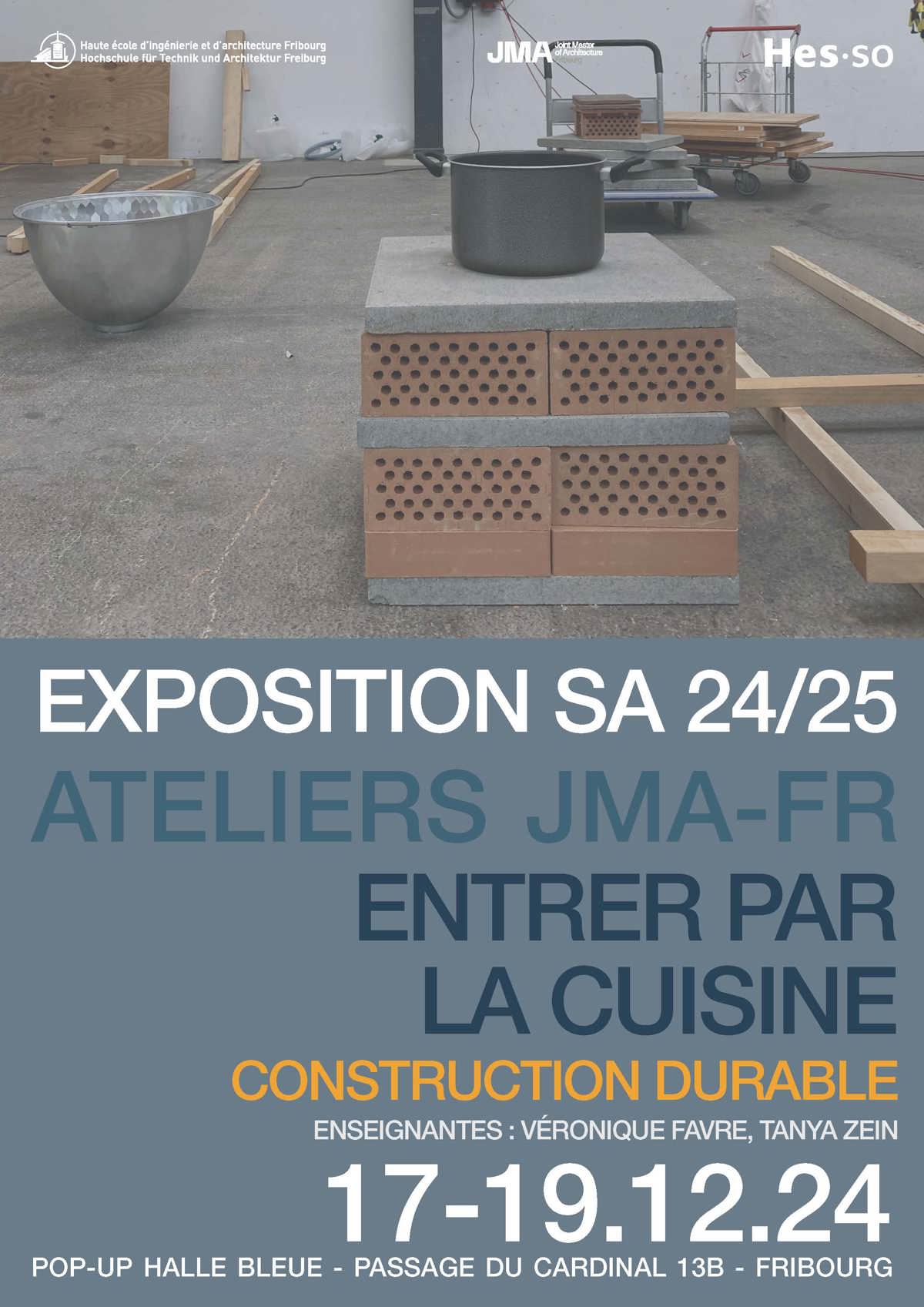 Duran l'atelier Master donné par Véronique Favre et Tanya Zein, les étudiant·es du Joint Master of Architecture Fribourg (JMA-FR) ont expérimenté la construction durable. Découvrez l'exposition de leurs travaux, intitulée "Entrer par la cuisine", à l'atelier PopUp.
