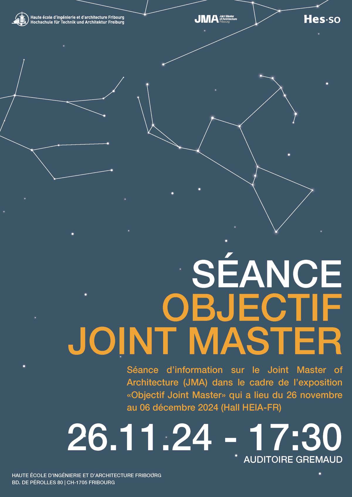 Une séance d'information sur le Joint Master of Architecture (JMA) est organisée dans le cadre de l'exposition Objectif Joint Master. Venez vous renseigner !