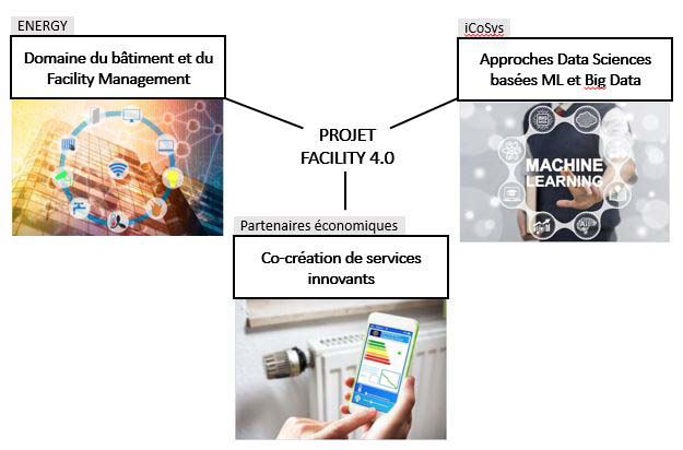 Le projet FACILITY 4.0 vise l’évaluation et la mise au point de services de monitoring et de gestion des bâtiments déployables à grande échelle et basés sur les techniques récentes de la science des données incluant l’IA, le machine learning, le cloud et l’Internet des objets. Plus spécifiquement, des services d’analyse, de maintenance prédictive, d’alerte ou de prévision sont ciblés dans FACILITY 4.0.
