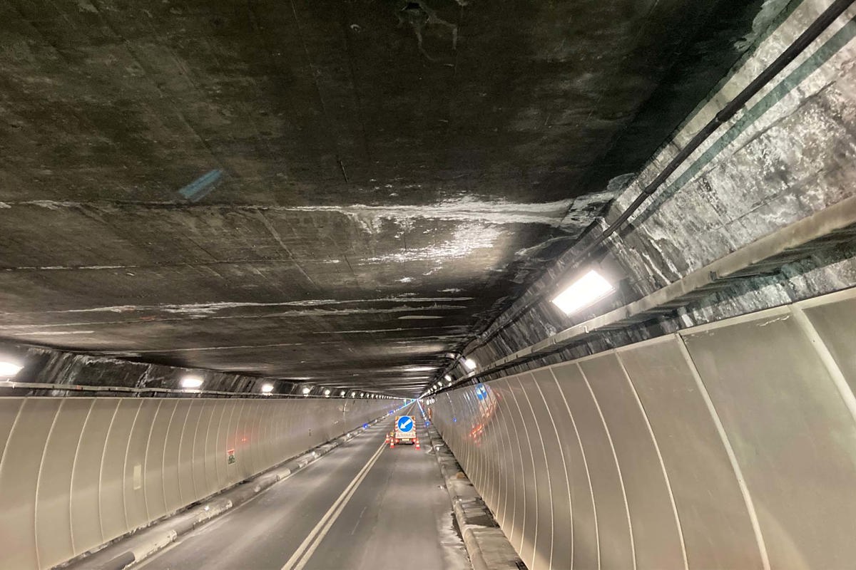 Le Tunnel du Grand-Saint-Bernard, d’une longueur de 6 km reliant la Suisse à l’Italie, date de 1964. Dans cet ouvrage, une dalle sépare le trafic de la gaine de ventilation supérieure. Cette dalle nécessite actuellement une rénovation lourde sur toute sa longueur. Un projet de démolition et de remplacement de cette partie d’ouvrage en gardant le tunnel en exploitation a abouti et le chantier débutera en automne 2023.
