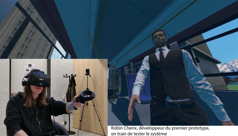 Concrètement, les chercheurs et chercheuses développent des scénarios virtuels projetés dans le casque. Un exemple : assise dans le bus, la jeune personne est abordée par un individu qui lui propose de descendre au prochain arrêt pour aller manger un hamburger chez McDonald’s (voir vidéo). Les éducateurs et éducatrices peuvent choisir le degré d’insistance de l’interlocuteur. Objectif : apprendre à la personne concernée à ne pas se laisser attirer hors du bus par l’individu.